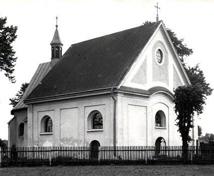 První zmínky o této stavbě jsou z roku 1443. O jeho vzniku jsou napsány různé pověsti. Říká se mu také kostel na Hrůbkách. Teprve v 18. století byla původní kaple přestavěna na kostel. Má tři oltáře. V kostele je umístěn erb, který je znakem kanovníka z Olomouce Františka Ondřeje, pána z Mandorfa, z roku 1690. Po jedné straně hlavního oltáře jsou přizděna ocelová pouta, která patří jako doklad k jedné z pověstí vzniku tohoto kostela.